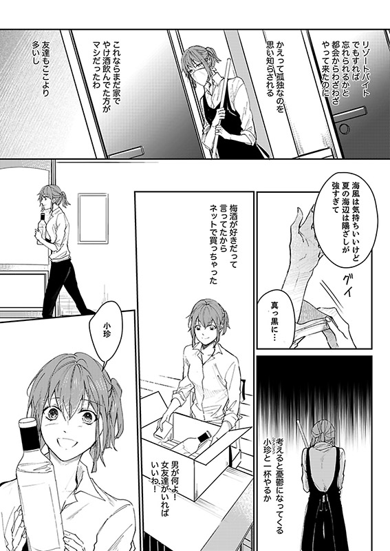 不倫関係だった元カレと別れ、気分転換に海辺のゲストハウスでバイトを始めた多恵。 それでも心の中の寂しさは消えず、憂鬱な気分は晴れないままだった。 そんなある日、外に出てやけ酒をしていた多恵は傷ついた人魚と出会い、手当てをするのだが…。