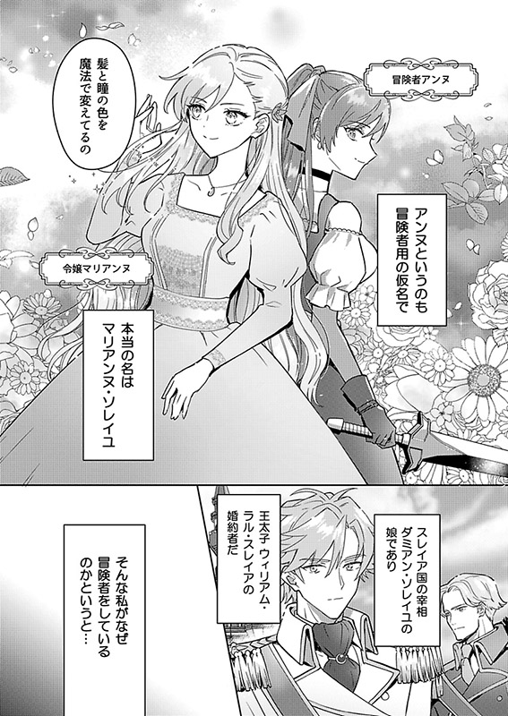 平日は公爵令嬢マリアンヌとして学園に通い、週末は姿と名前を変えて冒険者アンヌとしてギルドに通う日々…。アンヌを助けてくれる謎の男・バルトと恋に落ちたり、ウィリアムからの嫌味に耐えたり…。はたしてマリアンヌは運命の婚約破棄の日を無事に迎えられるか!?