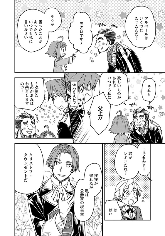 翌日、談笑の際に仲良くなった公爵の息子であるリュシアンに、魔法を教えることになったレオン。外の練習場で魔法の練習をしていると、リュシアンから攻撃魔法を見せてほしいと言われ、レオンの作った複合魔法を見せる。しかし、威力が強すぎて、公爵たちが練習場に来てしまう事態に!?