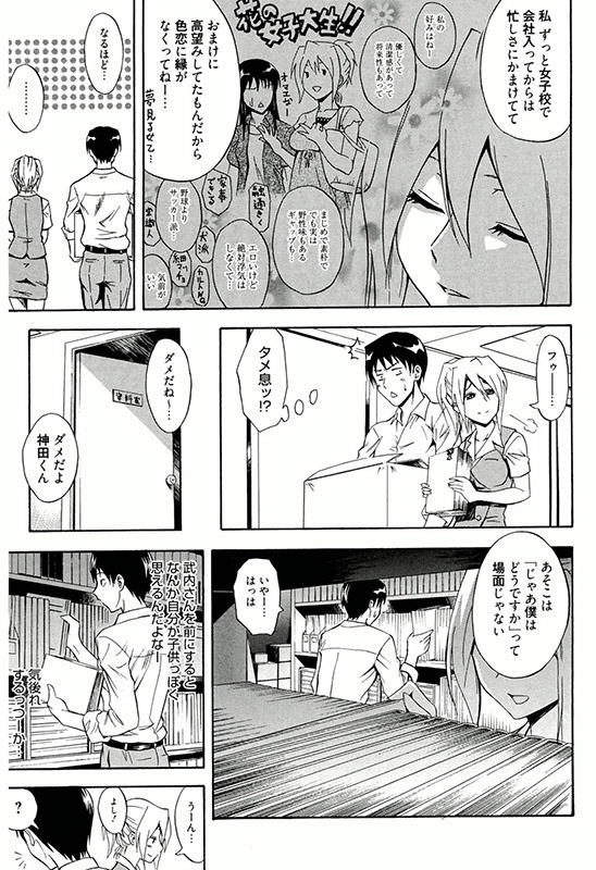 大学を出て入社以来、恋愛に興味が無かったわけじゃないけどなんとなく縁遠く、それなりに信頼されるポジションにはついたけれど日々忙しく、逆に男性と親しくなるチャンスは減っていた「わたし」。ところが、新入社員の素直なイケメン・神田くんが私に興味を持ち、おずおずとアプローチしてきた。でも、恋愛経験値の低いわたしは、とんでもないリアクションを取ってしまい彼を悩ませてしまう。それでも引かずに、逆にやさしく諭すようにアプローチしてくる彼。そして…。「あの…初めてなんですよね?」「うん、だから優しくして」