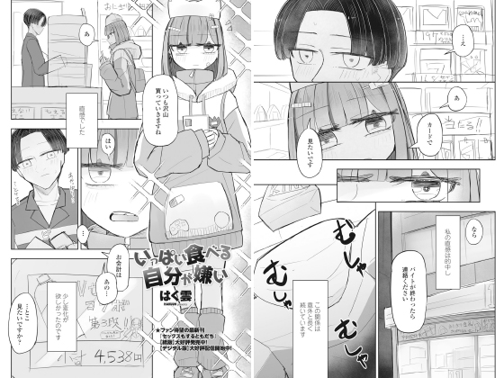 はく雲「いっぱい食べる自分が嫌い」 毎日のように大量のジャンクフードを買いこむ美少女が気になるコンビニ店員。思い切って声をかけると「吐くとこ見たいですか?」と誘われて…。過食嘔吐がやめられない彼女とそんな彼女が好きな彼の、吐瀉物で汚れた愛の物語。 ※ COMICペンギンクラブ 2025年2月号 収録作品