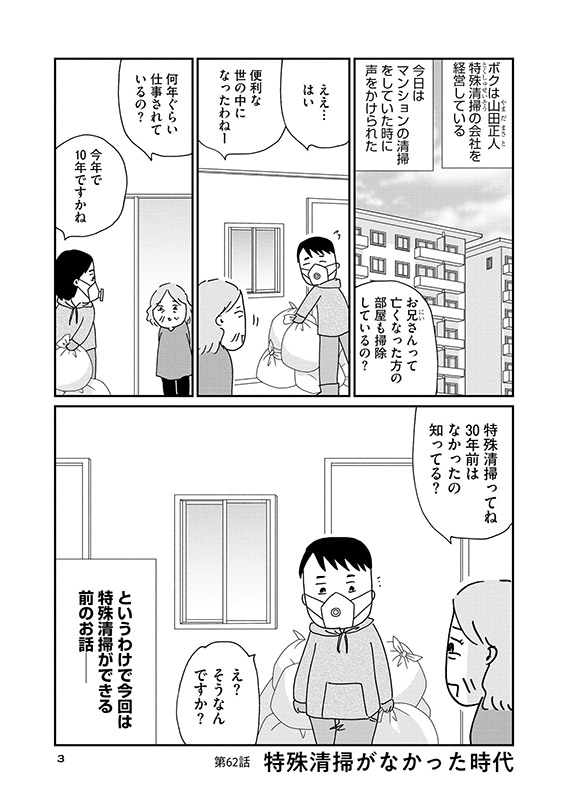 孤独死・夜逃げ・○○退去・多頭飼育崩壊…特殊清掃会社を経営する山田正人のもとには、今日もわけあり物件の清掃依頼が舞い込んでくる。