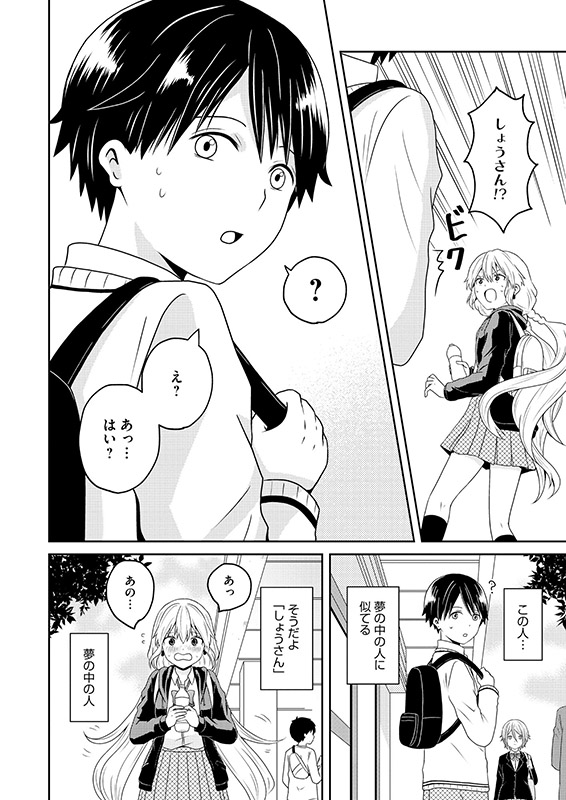 高校生の和夏は最近、「わかこ」という女性と「しょうさん」という男性が出てくる夢を頻繁に見ていた。 夢の中でわかこはしょうさんに「どこにいても必ずあなたを見つけ出す」といっているのだ。 そんなある日、和夏はしょうさんにソックリな男性・将吾とすれ違うが――!? 前世の恋人と再び恋に落ちる!? 転生ラブコメディー。