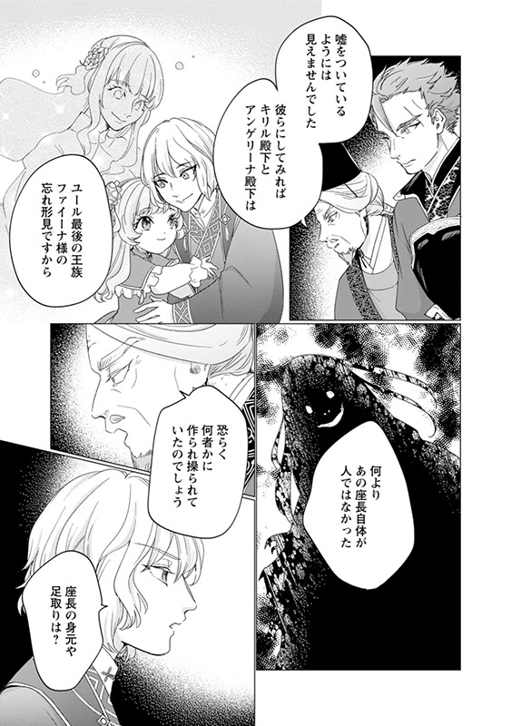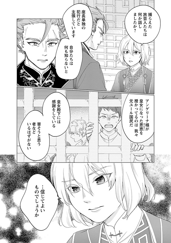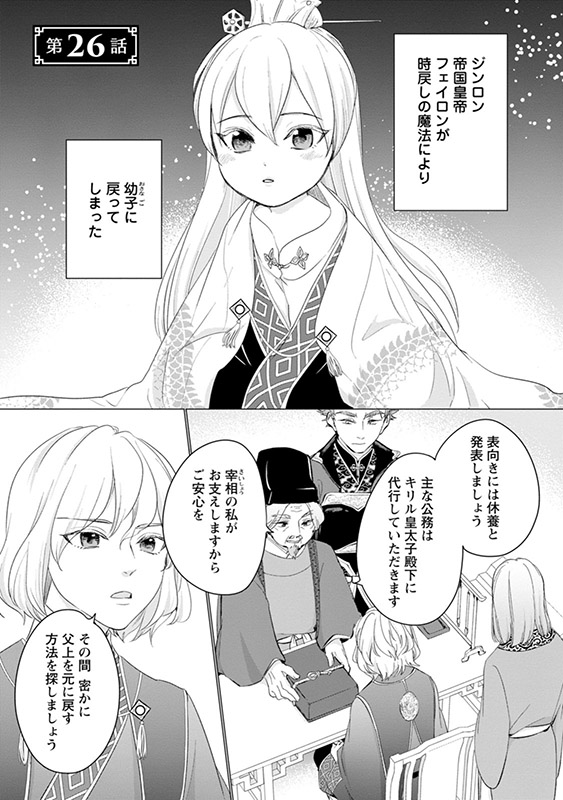 そんなある日、帝国では、紫星花祭という建国記念を祝う華々しいお祭りが開催されることに。催しの1つとして、亡国・ユールの旅芸人が影絵を披露する。しかし、旅芸人はアンゲリーナを襲い「時戻りの魔法」をかけようとする。アンゲリーナを庇って、身代わりに魔法を受けた冷酷皇帝である父・フェイロンは……○○の姿に!?