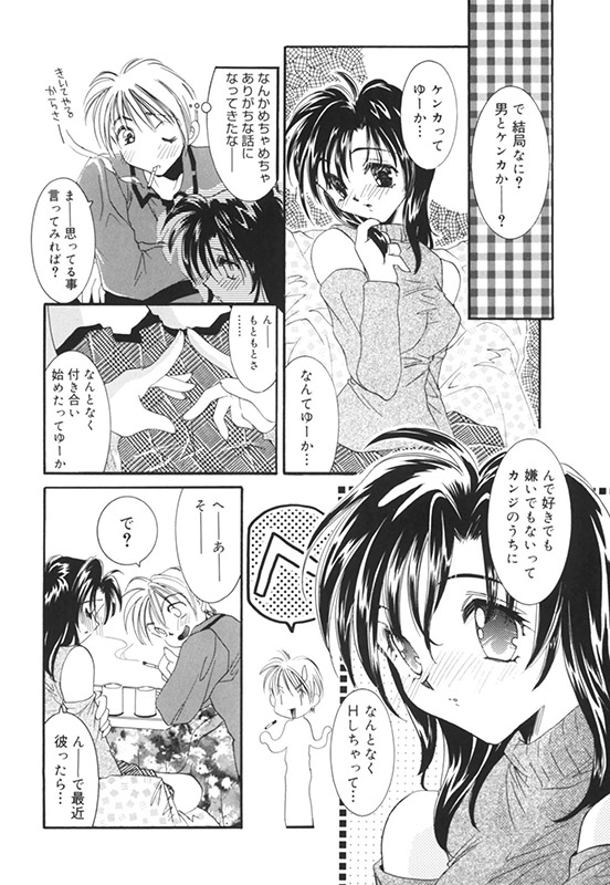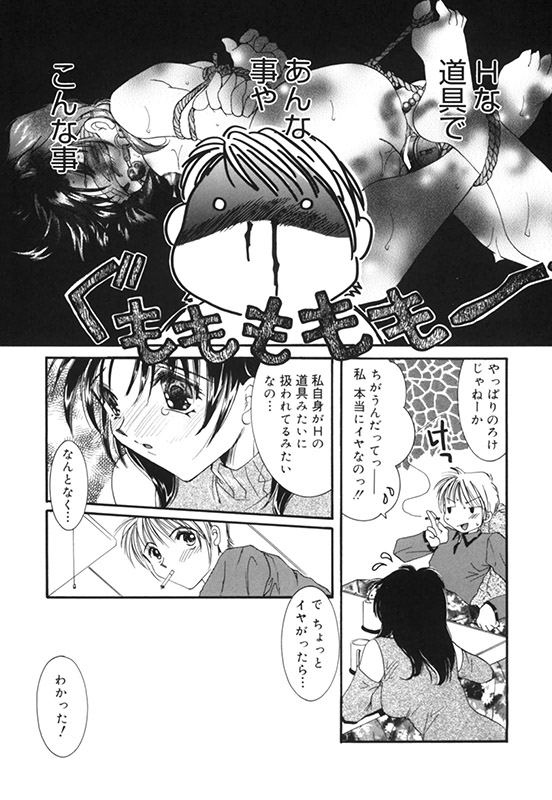 顔を赤らめながらつぶやく憂子。目の前の彼女が縛られ、道具を入れられてあえいでいるビジュアルが頭に浮かんで鼻血をふくオレ。気を取り直して彼女に「のろけじゃないのか?」と聞くと、涙がポ○○。「自分がHの道具みたいに扱われてるみたいなの…」 思わず理性がふっとび、彼女を抱きしめて「別れろそんなヤツ。そして、オレと付き合え。オレがお前を好きなのは知ってたか?」オレ暴走。そして彼女も受け入れてくれて、めでたしめでたしと思ったが…。