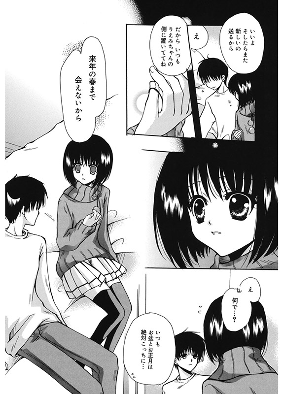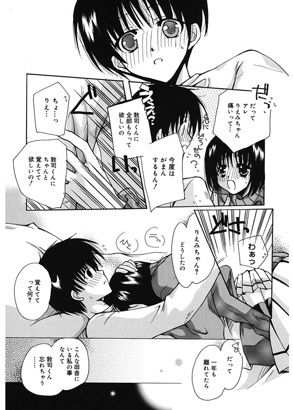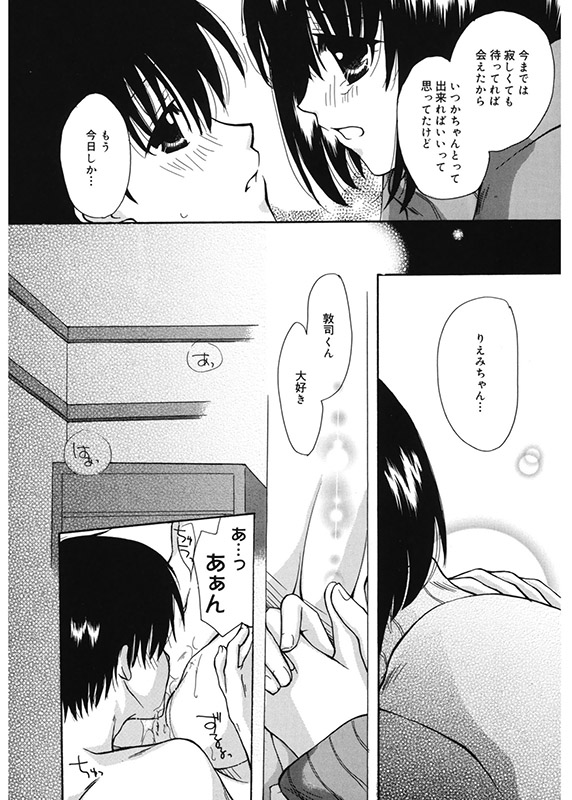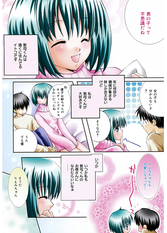 年に数回しか会えない私とイトコの敦司は、誰にも気づかれていないけれども「二人っきり」になるとベッドに入る仲。ただ、お互いにまだ完全な恋人同士になる決心がつかなくて、ハダカで抱きしめ合ったり、相手の大事な部分を口で愛し合ったりするだけ。でも、心は通じている。そんな私たちだったけど、大学受験が近づいて会えなくなることがわかった私は思わず「敦司くん! 処女もらって! 私を覚えててもらうためにも」と思わず訴えてしまい…。