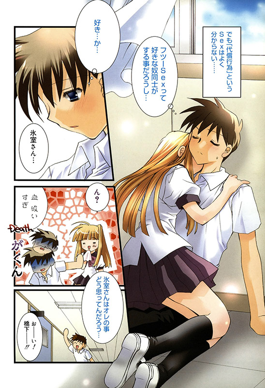 「突然ですが、オレは今どういうワケかクラスメイトに襲われています」 成績優秀・容姿端麗・スポーツ万能なクラス委員の氷室樹鈴。平凡なオレ・橋下雅道。しかし、そんな彼女には大変な秘密があって…。 「代償行為というsexはよく分からない。普通sexって好きな奴同士がする事だろうし」 悩みつつ身体を重ねる内に、気持ちはどんどん変化して行き…