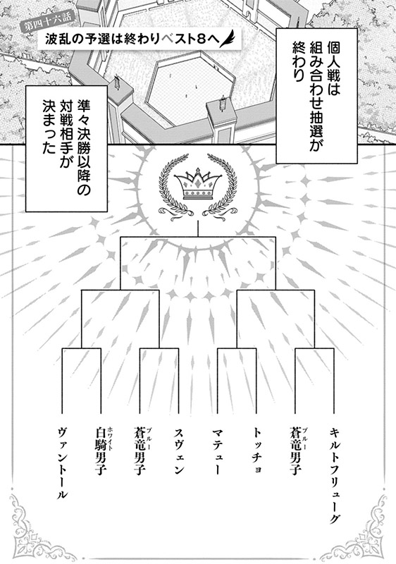 今年は粒揃いのメンバーがいるけど、ソーマはそこにいない…代わりにいるのが黒鋼から「剣の隘路を歩みし者」のスヴェンと「一本槍」のトッチョ。白騎「王の覇道」キールくんに黄槍のマテュー、そして蒼竜の暴れ馬ヴァントール。
