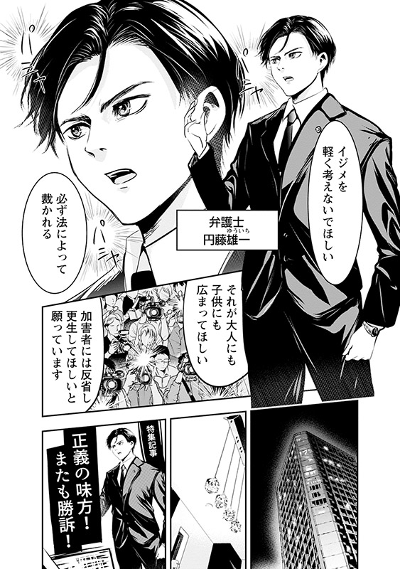 高校時代、凄惨ないじめを受けていた円藤雄一は、その経験から○○たちをいじめから守る弁護士として活躍していた。そんな雄一を昔からずっと支えてくれていた莉子との結婚も決まり、やっと幸せな生活を手に入れていた。