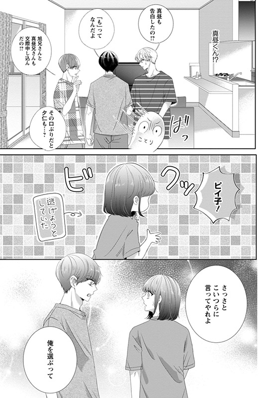 真鍋家での家政婦バイトは順調なすべり出し…と言いたいところだけど、3兄弟の誰かを好きになってつき合ったら即クビっていう契約なのに、長男の旭(高3・プロ棋士)と三男の夕仁(高1・2.5次元俳優)に交際を申し込まれて大混乱のことり。