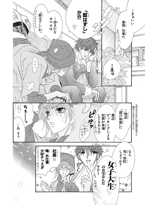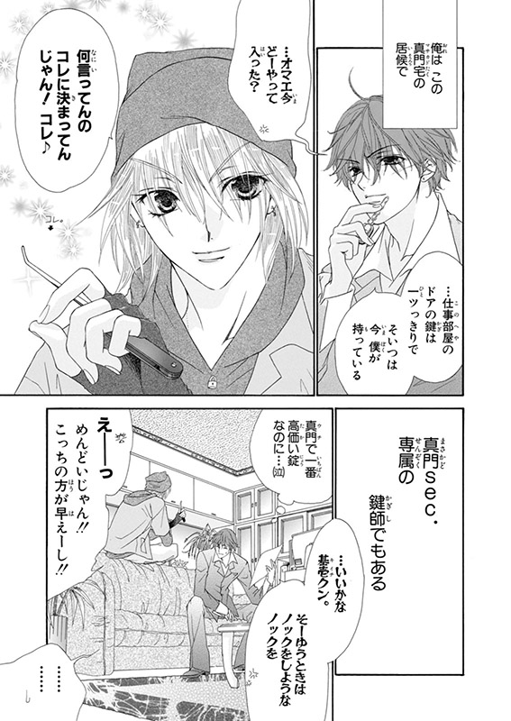 「俺達2人に開けられない『鍵』はない――」 施設を飛び出しピッキングを繰り返していた基壱は、ある日セキュリティ会社社長・聡に拾われ専属鍵師となる。そんな基壱のもとに飛び込んだ1つの依頼。それは、学生時代の初恋の相手からのものだった――。 そこから遭遇する数々の事件に基壱と聡が挑んでいく、イケメンペアのロマンスミステリーシリーズ!