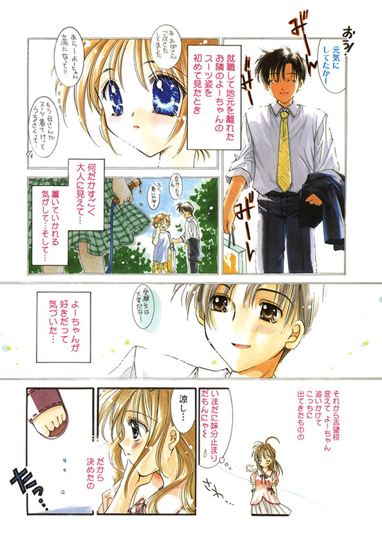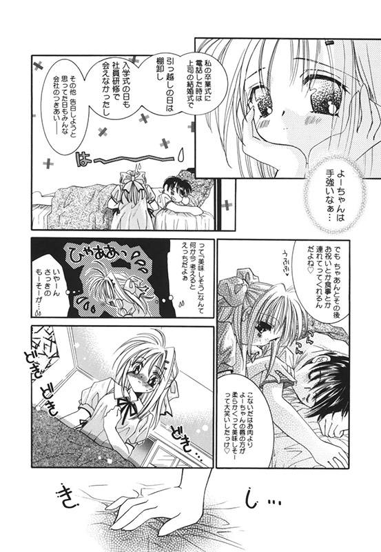 うそみたい…さっきまで想像してた事が本当になるなんて… あこがれていた彼にあっという間に服を脱がされ、指を挿れられ、一番ビンカンな部分を指でつままれて舌を這わせられる。思わず「もう…い…いれて…」と懇願してしまう。 そんな幸せいっぱいな表題作をはじめ、幸福な想いと熱いカラダの短編作品!!