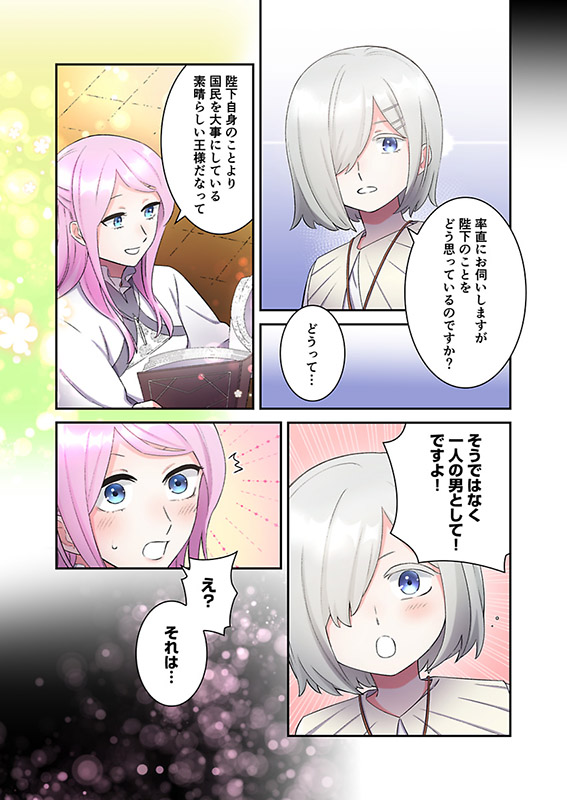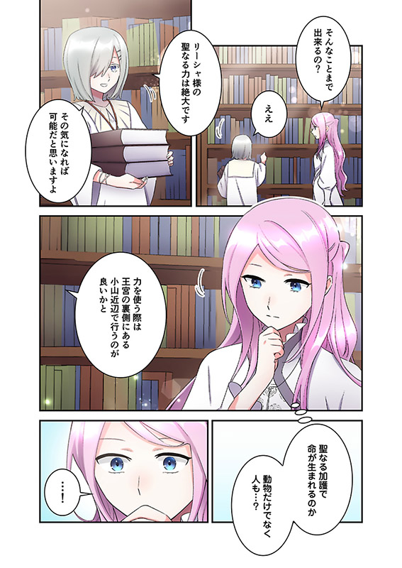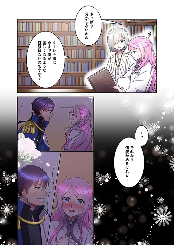 リーシャは助けてくれたお礼にと、聖女の力で荒れていたメートポリスを復興していく。次第にラオウハルトは、国のため尽力する健気なリーシャに惹かれていくのであった…。