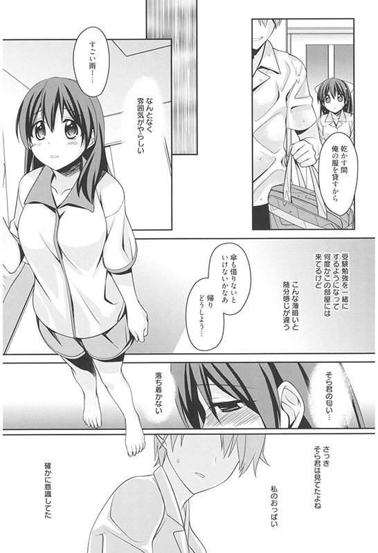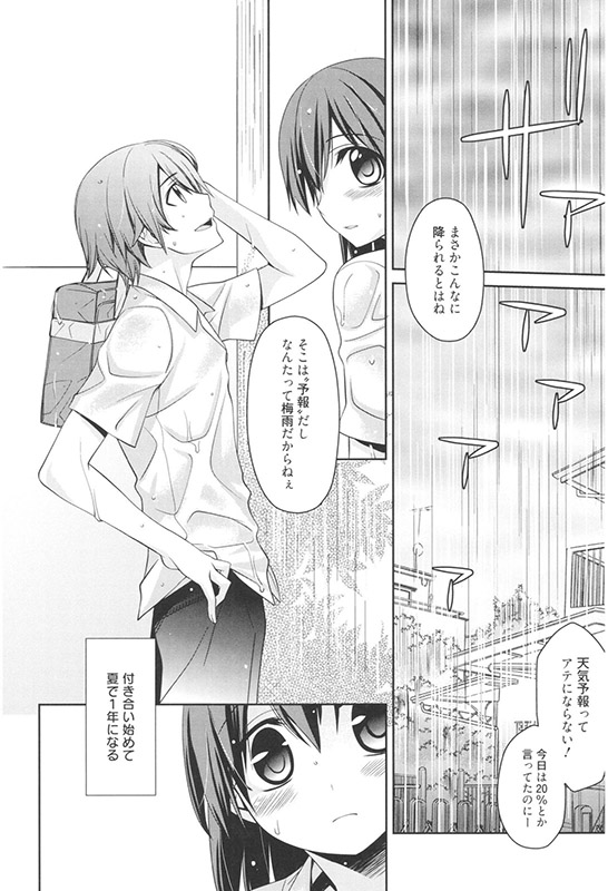 もう一年近く付き合っているけど、キス以上はまだない私たち。お互いの想いは通じているので、単にきっかけがなかっただけ。ところが突然の雨に降られて彼の家に雨宿りに行ったら…。