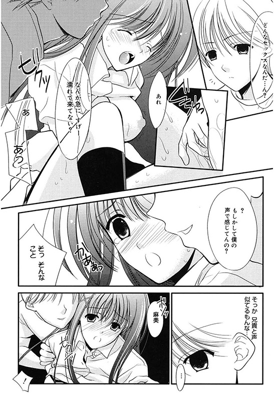 ひとりエッチをみられたのは憧れの兄ではなく弟だった。しかし、兄とそっくりな声で後ろからいやらしいセリフをささやかれていると、自然とアソコがトロトロに…。