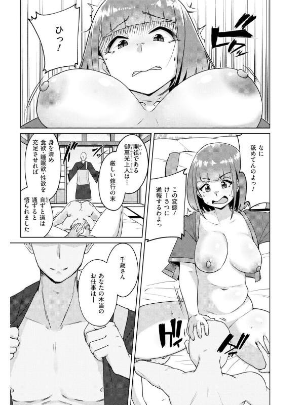 「御覧なさい、この屹立した雄珍宝(おち○ぽ)を…」 巻くだけで痩せるスレンダーベルト(9万円)を買うために、萬光寺(まんこうじ)にて超高時給の短期住み込みアルバイトを決意! がしかし…!そこは生臭坊主しかいない変態寺だった! セックスで極楽浄土にイきまくれ! ※ コミックカイエン(快艶) VOL.22 収録作品