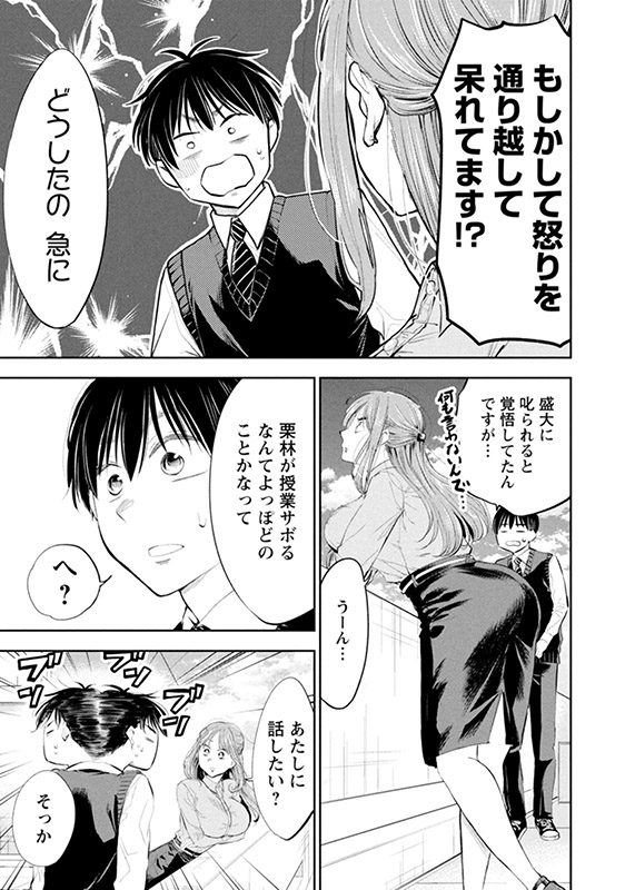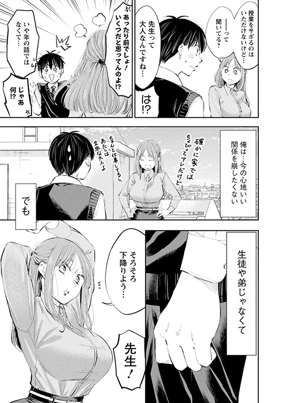 堀田先生への恋心に気付いた誠は、先生の前に立つと自然に振る舞えなくなってしまう。そんな自分の心を落ち着かせるため初めて授業をサボり、屋上でモヤモヤしていると、そこに先生が現れて…。
