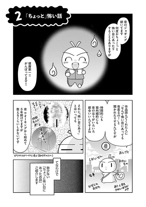 「旅行先で出会った不思議な子」 「誰もいないはずの風呂から浮かび上がるナニか」 「カラオケのテレビ画面に映る黒い影」 「異世界へ続く階段」 「死の淵で見たモノ」etc. 霊感はないはずなのに、視えちゃう!? 著者が○○の頃から現在に至るまでに体験した、誰にでも起こりうる(!?)恐怖&不思議な話を描いたコミックエッセイ、第2弾!