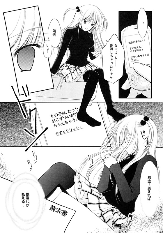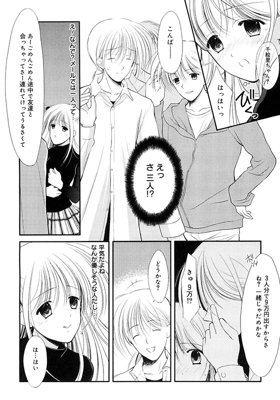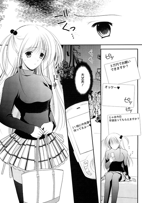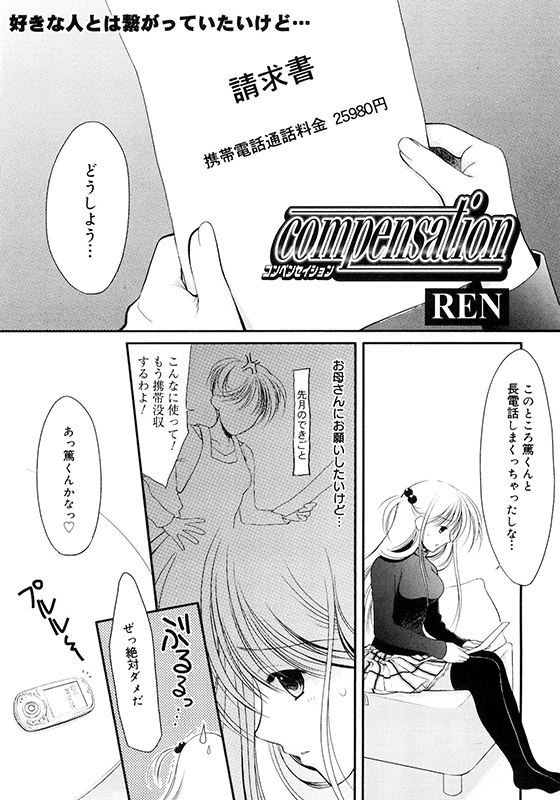 軽い気持ちでの「出会い」。ところが待ち合わせ場所には優しそうな三人のイケメンが来て、多少躊躇したものの彼らの車に乗り込む。 ところが取り囲まれて、男達に好き放題に扱われる「compensation」をはじめ、キケンな愛と欲情を集めた短編作品集!! 「せっかくのいやらしい姿なんだからちゃんと残しておこうね」「いやああっ やめて やめてよおっ」