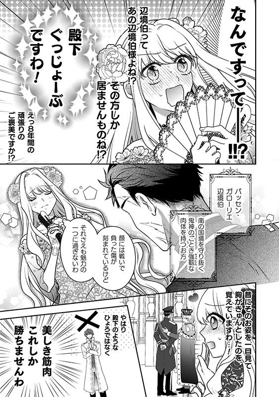 筋骨隆々な男性が好みな彼女は大喜びで辺境伯に嫁ごうとする!