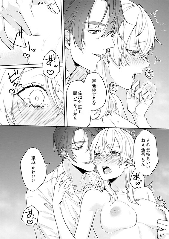 気づけば他の客は皆帰り、悠吾と二人きりになった瑛麻は、ほろ酔いでふと本音をこぼしてしまう。お酒で発散しているのは仕事のストレスだけじゃなくて、アッチの欲望も…だと。悠吾はいたずらっぽく「俺なら、その欲望、発散させてあげられると思うけど…?」と瑛麻の髪に触れて―――!