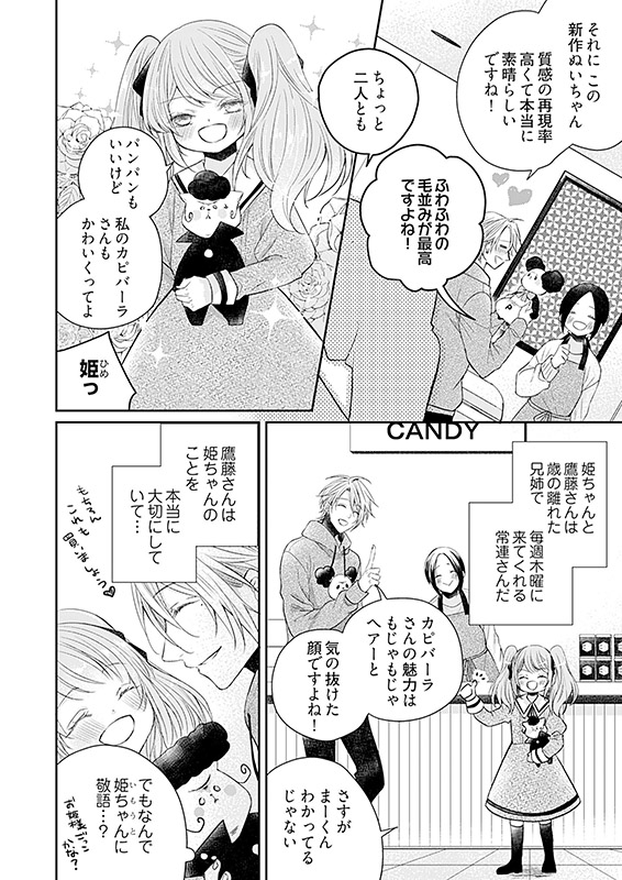 さくらの営む小さな雑貨屋の常連客・鷹藤さんは、かわいいマスコットキャラクターを愛するゆるふわ男子で、○○たちにも大人気。さくらはそんな鷹藤さんをひそかに想っている。