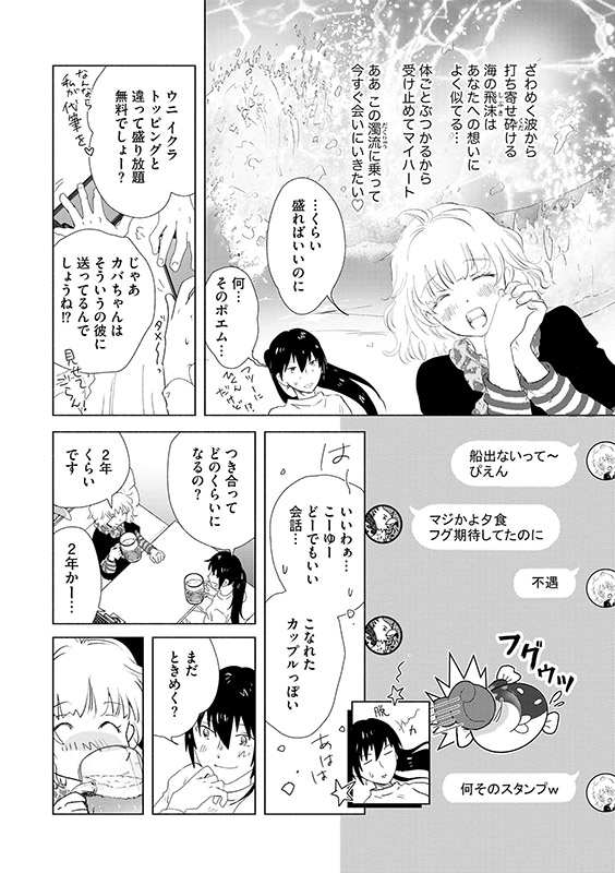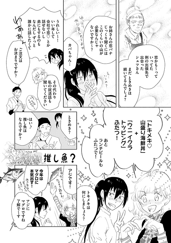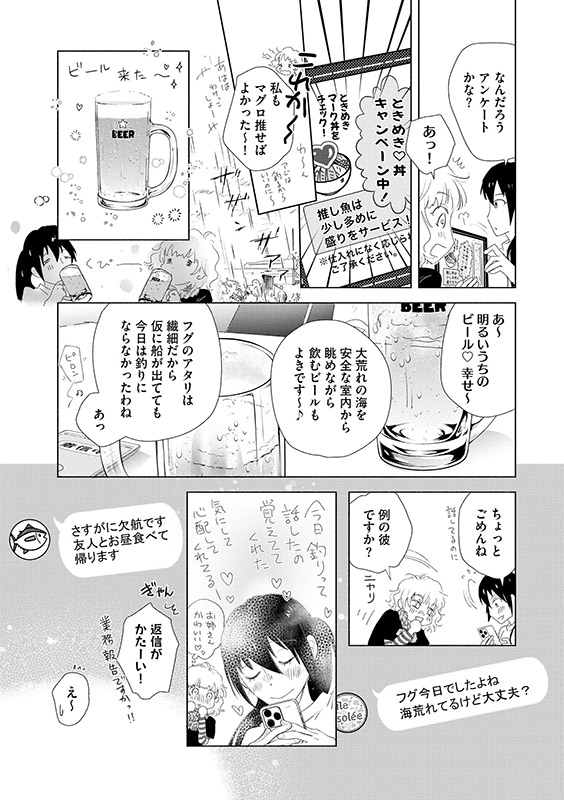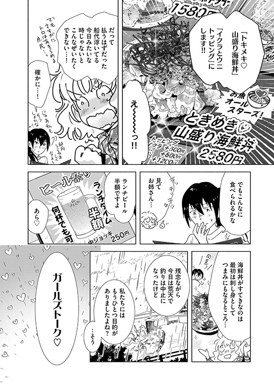 釣り女子・カバちゃん、ついに就活生に。 将来に悩みながらも、釣りと美味への情熱は止どまることナシ! 一方、釣りの先輩お姉さん、その弟・青(あお)くん、同級生のちさちゃん、スケボー女子・モリトー……仲間たちのうれしもどかし恋愛事情からも目が離せない展開で、人気連載が堂々完結──! コミックス限定のおまけまんがやスペシャルレシピ満載の一冊!