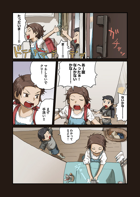 時には弟の栗(くり)に手伝ってもらったり、お父さんやお母さん、町の定食屋さんのシェフ等からヒントを得ながら、予測不可能な料理を作り上げます!!