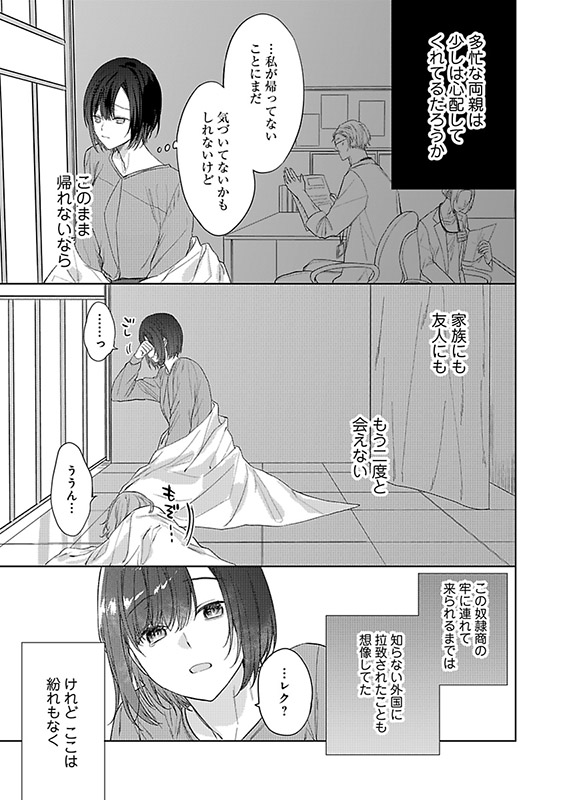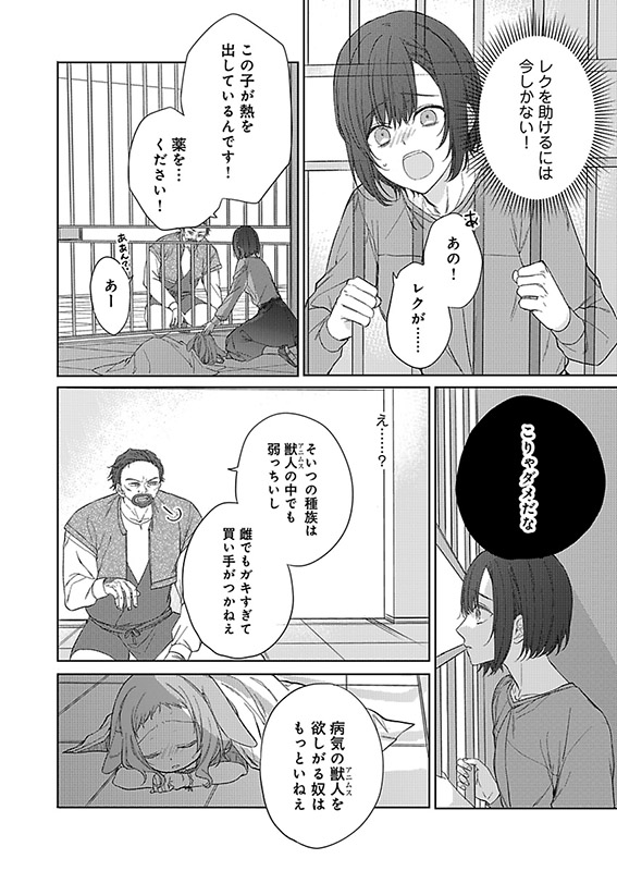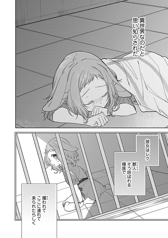 同じく○○として囚われていたウサギの獣人・レクとともに狼獣人・リベリオに助けられ、獣人の国・アニムニアで生活することに。