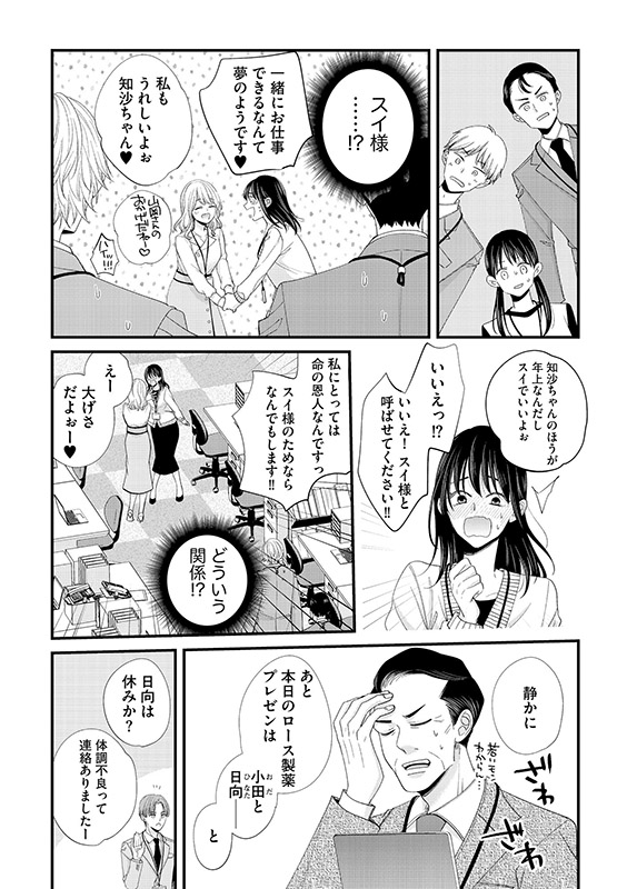 遅刻や欠勤が続き仕事にも影響が出るようになり、スイをはじめ同僚たちが心配する中、心労が重なり社内で倒れてしまう。