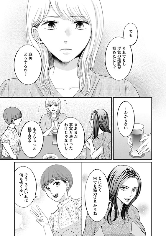 クローゼットに押し込まれていた、香水の匂いのする使用済みのシーツ…。璃子と友里香にそのことを話すが、「浮気が事実だったら、麻矢はどうしたいの?」と問われ、麻矢は返答に困る。 そして数日後の朝、夫の勤務先から麻矢へ電話が――。そこで告げられたのは、夫が2日も無断欠勤をしている、という衝撃の事実だった―――…。 ※4〜6話を収録