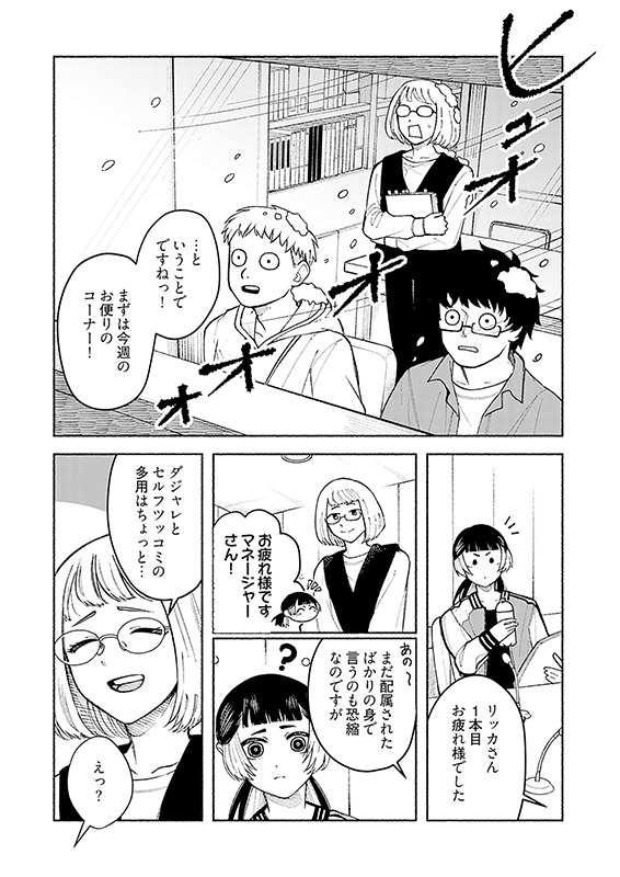 立花(たちばな)リッカは社畜生活に限界を感じ、○い頃からの夢だった芸人の世界へと飛び込んだ。仕事に恋愛…すべてを地固めしていかなければならないことは分かっている。それでもアルバイトで食い繋ぎながらもジリ貧ピン芸人生活を送るリッカの目の前に、憧れの先輩芸人である猪熊(いのくま)ミドリが現れて…!?むせ返るほどにあがいて、もがいて、駆け上がる芸人群像劇の幕が上がる──。【ズズズキュン!】