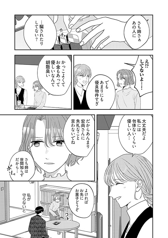 しかし彼女には恋だなんだとうつつを抜かす暇はない。実家への仕送りに加え、お人好しな性格が災いし、銀行口座の残高は4649円。今日のお弁当のおかずは梅干し一つ。困り果てて帰宅途中に求人広告をみていたら、水商売のスカウトに声をかけられる。強引なスカウトを振り切れずにいると、そこに須和塾長が現れて――。