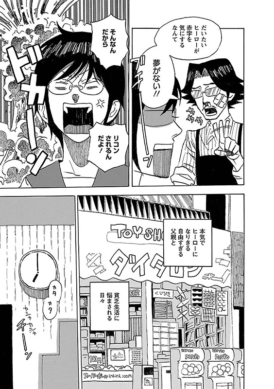 オヤジに店は任せておけない!! 1年中ヒーローのコスプレをしているおかしなオヤジと、しっかりものだけどちょっと守銭奴な娘が、時にぶつかり、時に協力しあいしながら、○○たちのために町のオモチャ屋さんを切り盛りするハートフルコメディ!