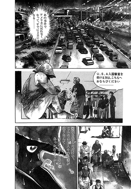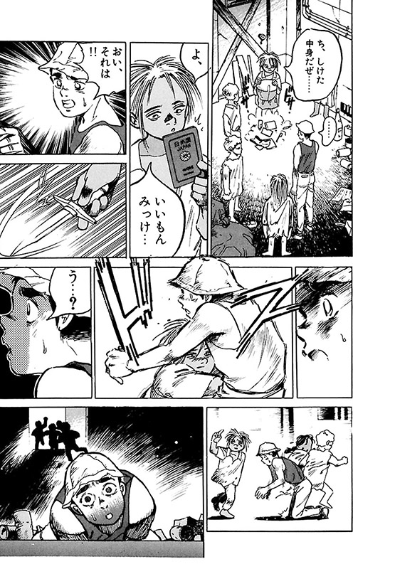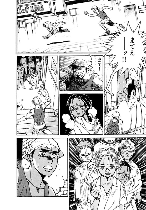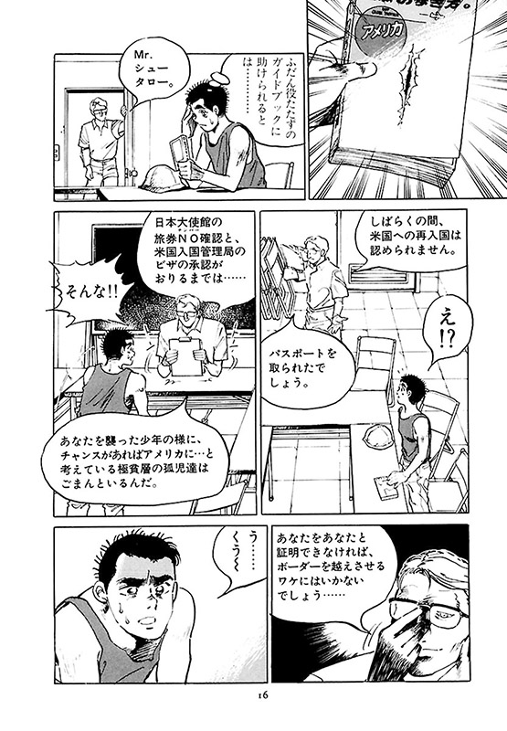 もう一度自分を見つめなおすため、ロスから放浪の旅に出るしゅう。一人の写真家と彼が撮った写真との出会いがきっかけで、カメラを手に……。青い地球が撮りてえんだ! 作者がアメリカで1年暮らした実体験に基づく青春漫画。現状打破しきれない苛立ちと、ガムシャラにつっぱしる若いエネルギーに満ちた意欲作。