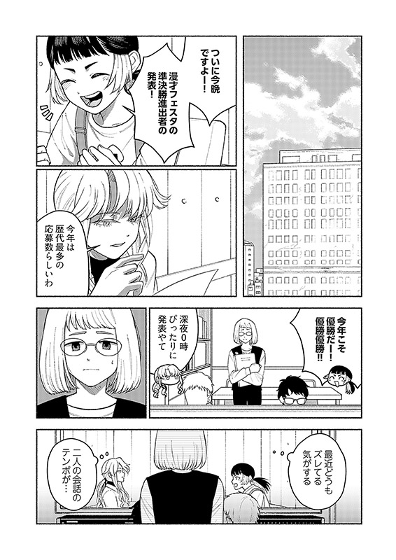 立花(たちばな)リッカは社畜生活に限界を感じ、○い頃からの夢だった芸人の世界へと飛び込んだ。仕事に恋愛…すべてを地固めしていかなければならないことは分かっている。それでもアルバイトで食い繋ぎながらもジリ貧ピン芸人生活を送るリッカの目の前に、憧れの先輩芸人である猪熊(いのくま)ミドリが現れて…!?むせ返るほどにあがいて、もがいて、駆け上がる芸人群像劇の幕が上がる──。【ズズズキュン!】