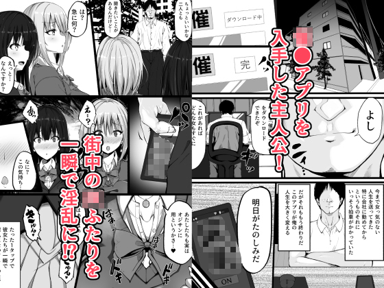 女のコを瞬時にエロエロにしてしまうアプリ『○○アプリ』を手に入れた主人公。