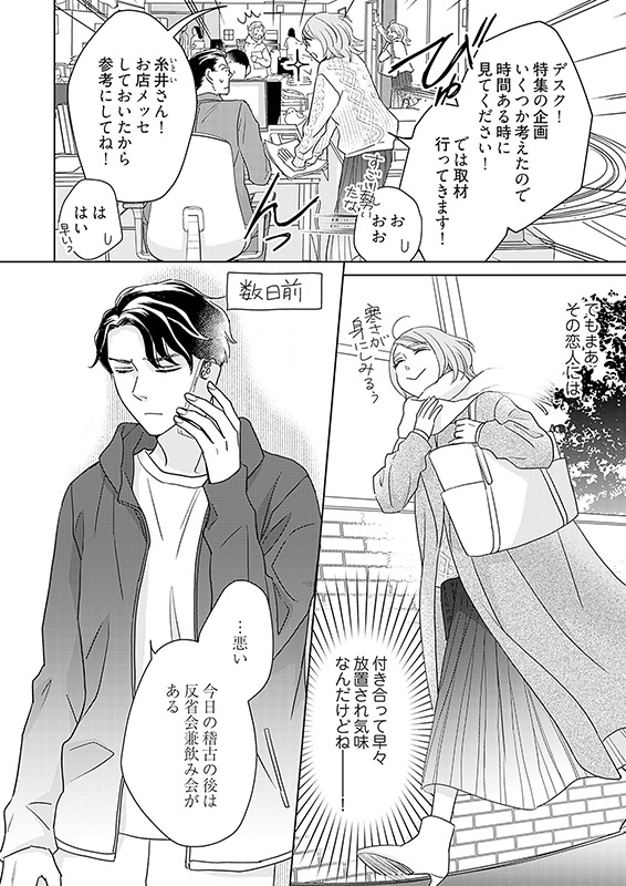 「またいい子ぶって、他人の仕事まで押しつけられて疲れていませんか?」口を開けばイヤミばかりなイケメン守衛・深町(ふかまち)に、とあるきっかけで興味をもたれてしまった和佳。極力関わりたくないのに──職場にまで現れるストーカーを追い払うため、深町に恋人のフリをしてもらうことになって!?!? ミステリアスなイケメン守衛×お人好し報道記者の局内ラブストーリー!【恋するソワレ】