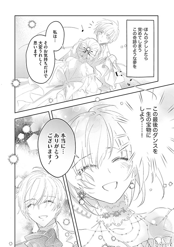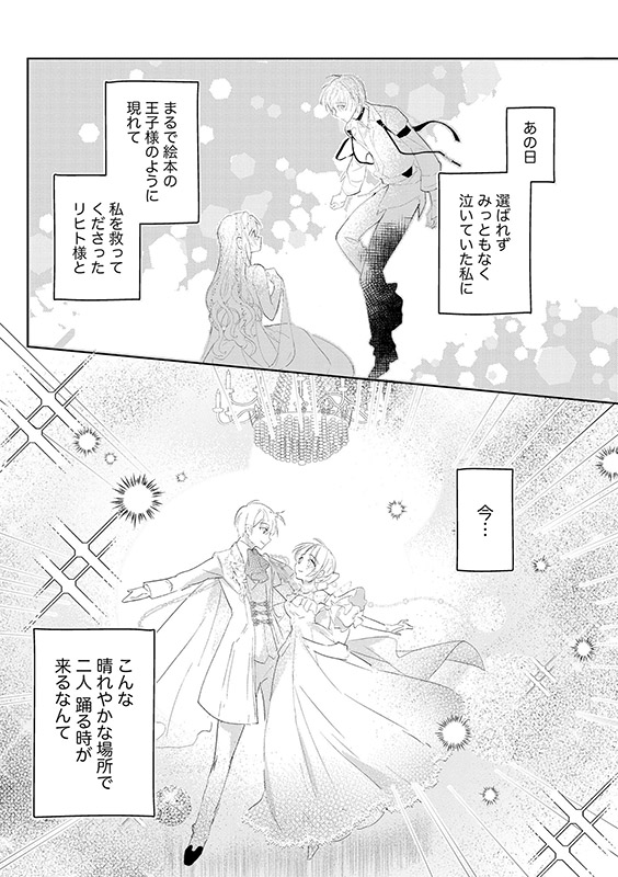 舞踏会デビュー失敗から婚約破棄となった伯爵令嬢ティアだが、自分にだけ見ることのできる“光る人”の青年と出会って勇気づけられ、再び侯爵子息ハーネルドと婚約する。