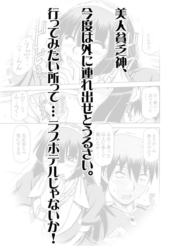 「女神は他人にも見える」と知って、外出禁止にしたんだ。ド派手な着物姿でうろつかれたら、目立ってかなわないからな。そしたら勝手に通販を駆使して洋服を手に入れてやがる。おかげで財布は空っぽ。この貧乏神がぁ!なんだよ、入りたい所があるって…そこ、ラブホテルだろ!ムチムチ女神様との初デートは、やっぱり波乱含みです。
