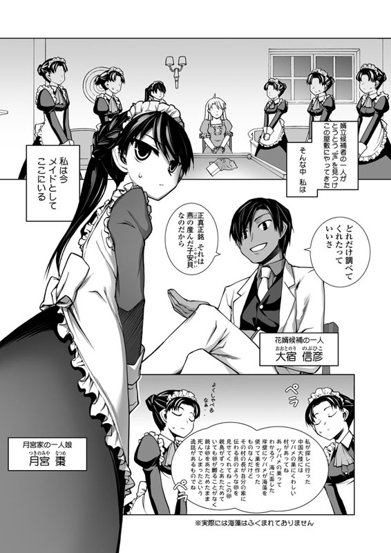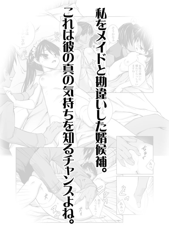 宝を見つけてきたという婿候補は、女装した陽一郎を私と間違い求婚してしまう。私の方はというと、ただのメイドと思われたようだ。これはある意味好都合だ。メイドとして婿候補に近づいて、彼の真の姿を伺うことができるのだから。案の定、女好きの彼はメイド(私)の体を求めてきて…。 昭和竹取物語、お嬢様の瞳に決意が宿ります