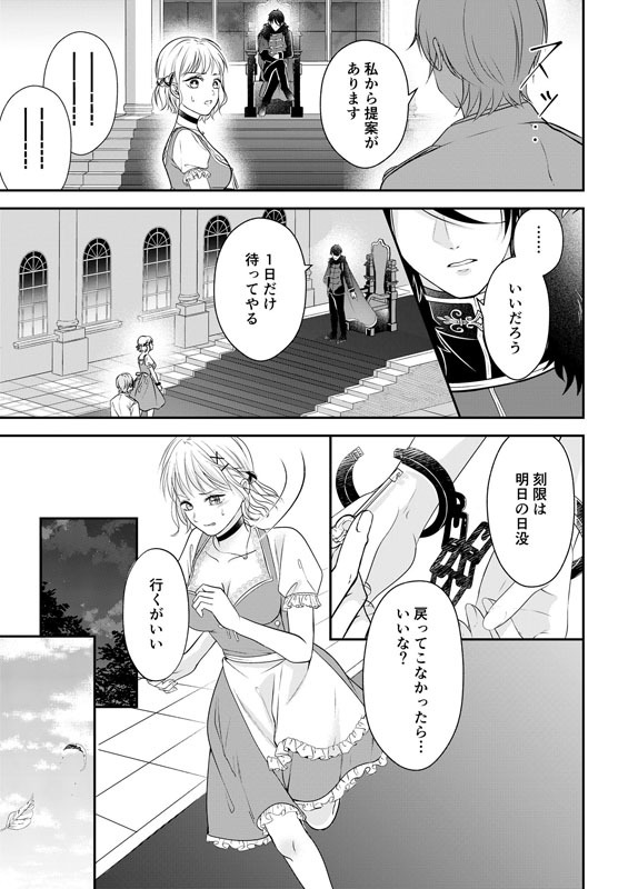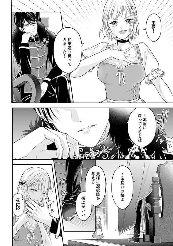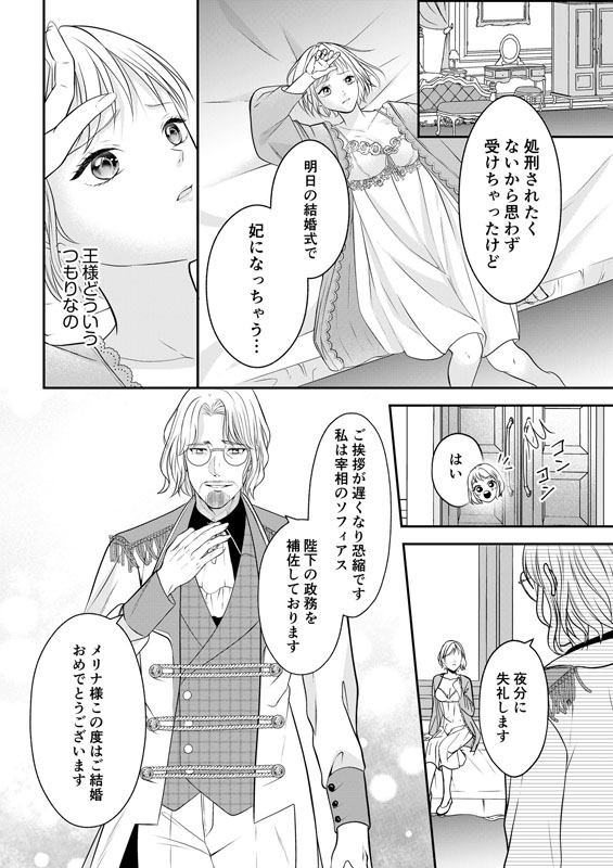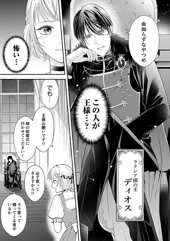 期限通り日が沈む前に戻ってきたメリナに処刑か、ディオスの妃になるか選択肢を与えられ―――――