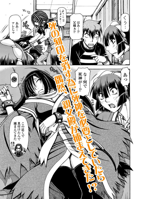 オレの尻に付けられた刻印。いくら女神とエッチしても運気が上がらなかったのは、どうやらこいつのせいらしい。仕掛けた死神本人でないと解除できないそうだ。そこへ偶然、当の死神を抱えて、女神の父親が現れた。頑なに解除を拒む死神。お父様、彼女をヤっちゃってください!