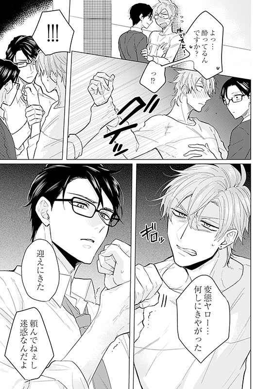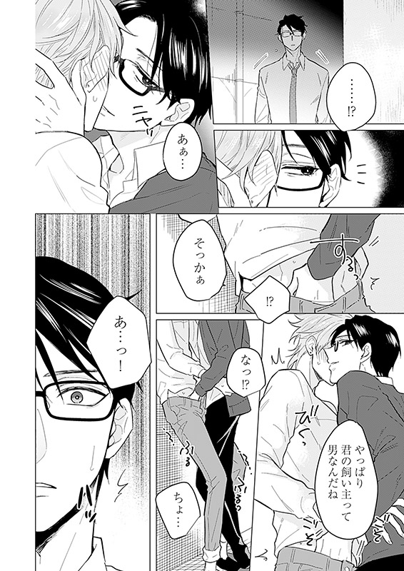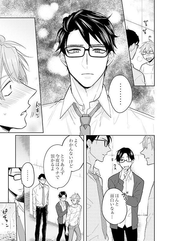 眼鏡フェチな眼鏡職人兼ヒモ男・詩音(しおん)は、寄生していたメガネ美女宅を追い出され、職場で寝泊まり生活中。ある夜、店の前で行き倒れていたビン底眼鏡のモサいリーマン・天野(あまの)を拾った詩音。ダサい眼鏡が許せなくて、試作品を装着させたら…なんだかムラムラくる色っぽいインテリメガネに大変身!!