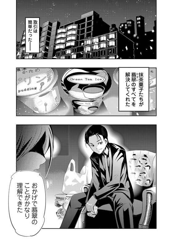 殺し屋・佐東(サトウ)は育ての親であり組織のボスでもある”バウムクーヘン”から「私を殺せ」と依頼を受ける。ボスは死ぬ間際、「私の娘を守って欲しい」と一人の少女を佐東に託す。カワセミの羽のように蒼く綺麗な瞳を持った”翡翠(ヒスイ)”というその少女には、ある特別な力があった。やがて翡翠に莫大な懸賞金が懸けられたことを知った佐東は、500人を超える同業の殺し屋から彼女を守る為の逃避行を決意する──。