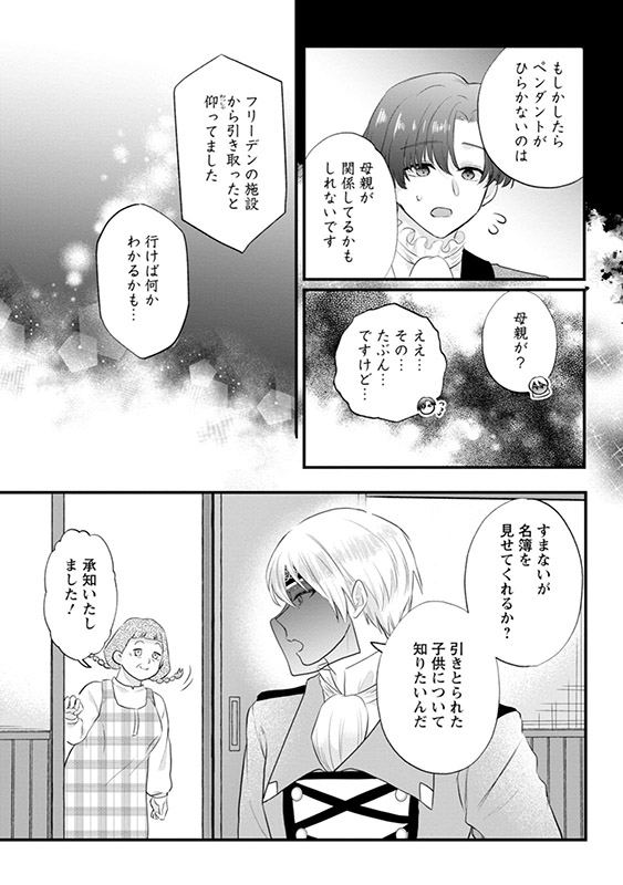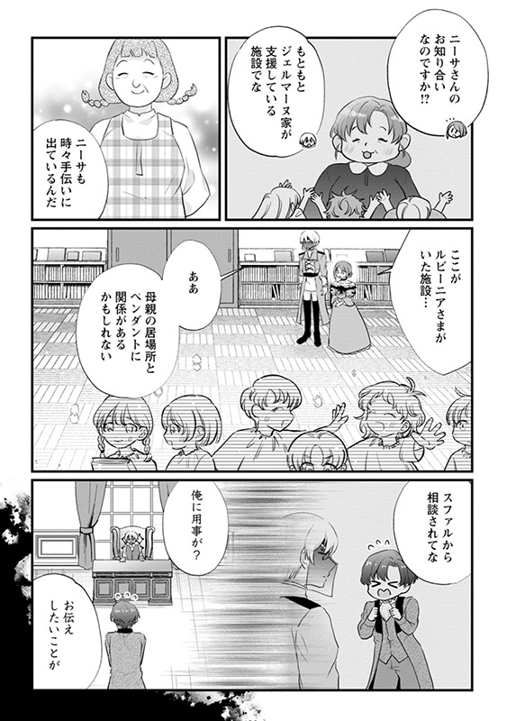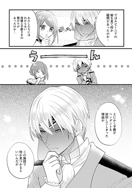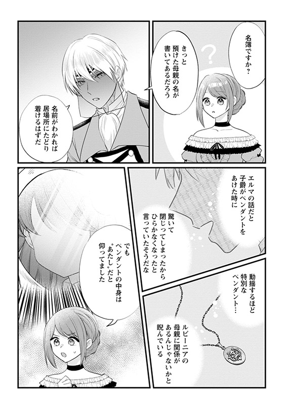 エルマの持つ加護戻しの能力。ユーグリークと出会い、愛されることで自分も誰かを幸せにするために能力を使いたいと強く思うエルマ。友人のルビーニアは開かなくなったロケットペンダントを直してほしいとエルマに依頼してくる。加護戻しを使えば簡単に開けるが、ペンダントには家族の想いが渦巻いていて…。