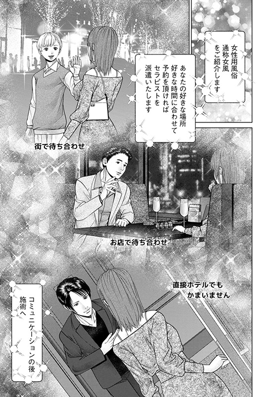 女性用風俗──通称「女風」。エキスパート揃いの男性の施術で女性の性を解放し、新しい自分を発見できる場所…。