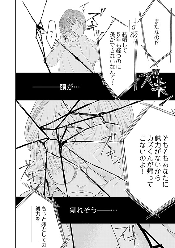フルタイムで仕事をしながら、家事も頑張るマジメで地味な妻・優花(ゆうか)。家政婦扱いする夫の言動も、姑からの子づくりプレッシャーも、結婚したら【よくあること】。きっとみんな一緒。私の努力が足りてないだけ。そう思おうとしてたけど…ある日、夫の酷い言葉に傷つき、家を飛び出した優花は交通事故に…!?