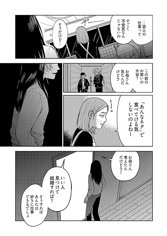 立花(たちばな)リッカは社畜生活に限界を感じ、○い頃からの夢だった芸人の世界へと飛び込んだ。仕事に恋愛…すべてを地固めしていかなければならないことは分かっている。それでもアルバイトで食い繋ぎながらもジリ貧ピン芸人生活を送るリッカの目の前に、憧れの先輩芸人である猪熊(いのくま)ミドリが現れて…!?むせ返るほどにあがいて、もがいて、駆け上がる芸人群像劇の幕が上がる──。