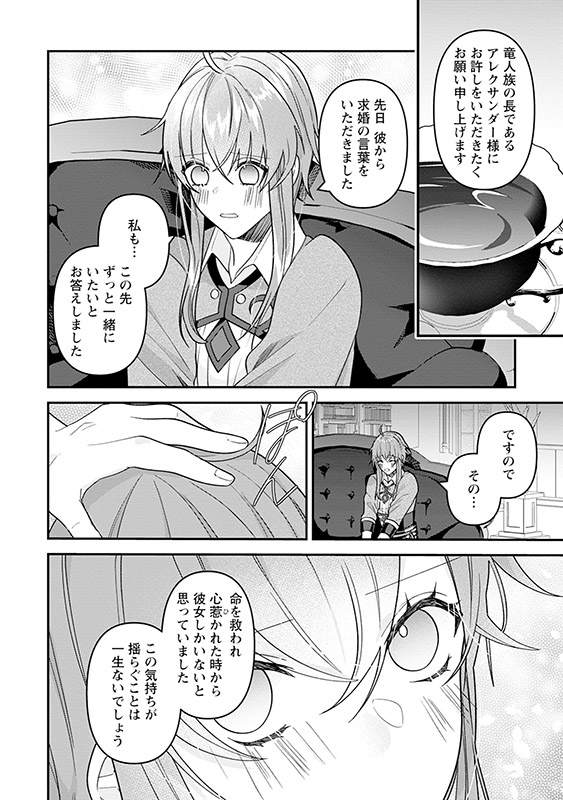 ステラはリーンハルトからのプロポーズを受けて、挨拶のためにリーンハルトの故郷であるアマリア公国へ訪れる。親族であり竜人族の長でもある弟のアレクサンダーからは祝いの言葉をもらうも、元老院という国の重鎮からは結婚反対の声があがって…。